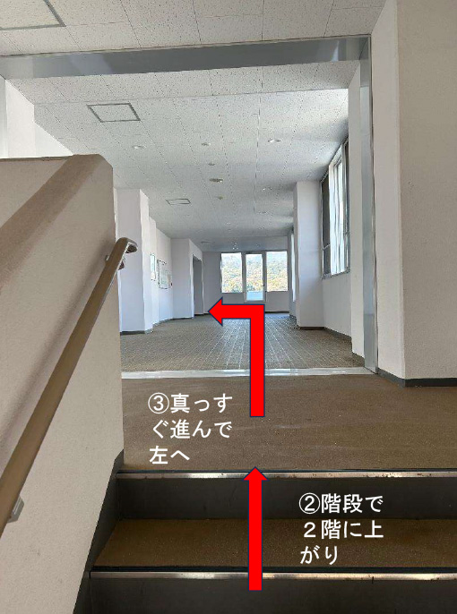 2階に上がったら真っすぐ進んで左に曲がります。